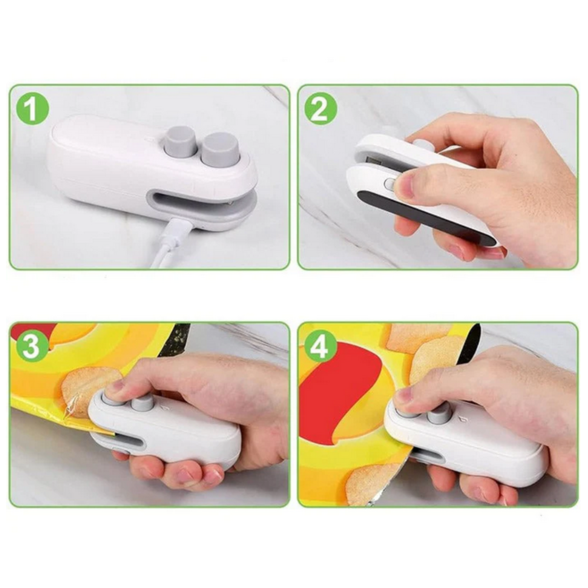 Frisch versiegelt in Sekundenschnelle: Das 2 in 1 Mini Versiegelungsgerät verschließt Snacktüten, Gefrierbeutel & Co. luftdicht – für längere Frische und weniger Lebensmittelverschwendung.