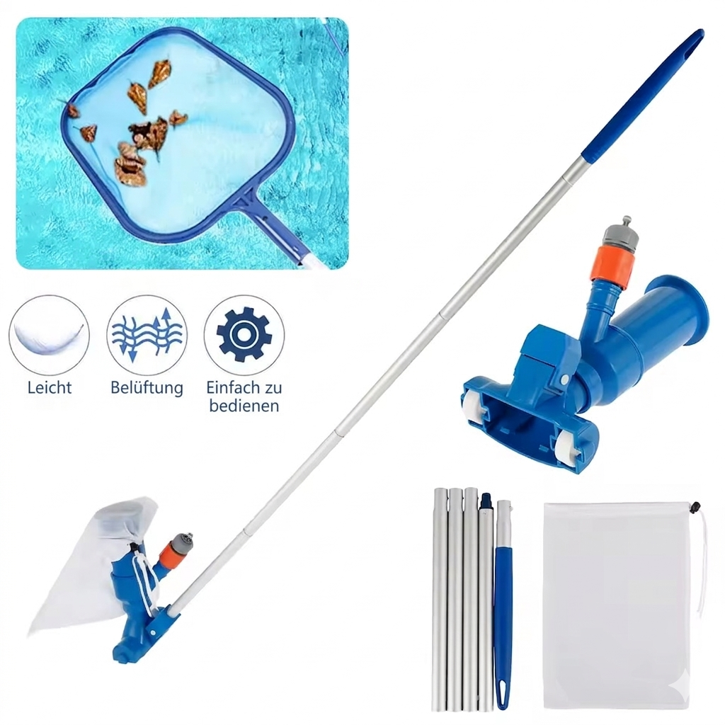 Pool-Reinigungsset mit Teleskopstange – Netzfilter und Zubehör für die Poolpflege